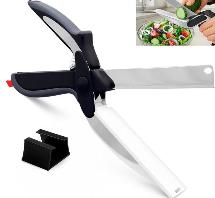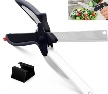 These 2-in-1 Kitchen Scissors combine a sharp stainless steel blade with a built-in plastic cutting board, making it easy to slice fruits, vegetables, meat, and cheese in seconds. Designed with a safety lock for secure storage and ergonomic handles for comfort, it’s the perfect time-saving kitchen tool for everyday cooking.