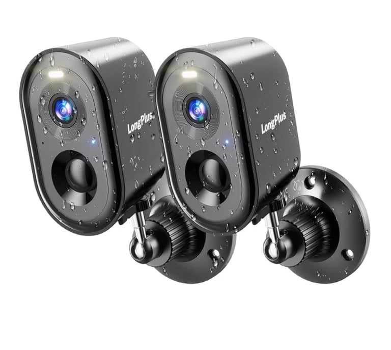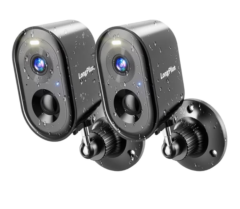 A pair of wireless outdoor security cameras delivering sharp 2K resolution for clear home monitoring. Equipped with AI motion detection, two-way audio, and flexible cloud or SD storage options, they provide reliable, smart security for outdoor spaces. Easy to install and ideal for protecting your home day and night.