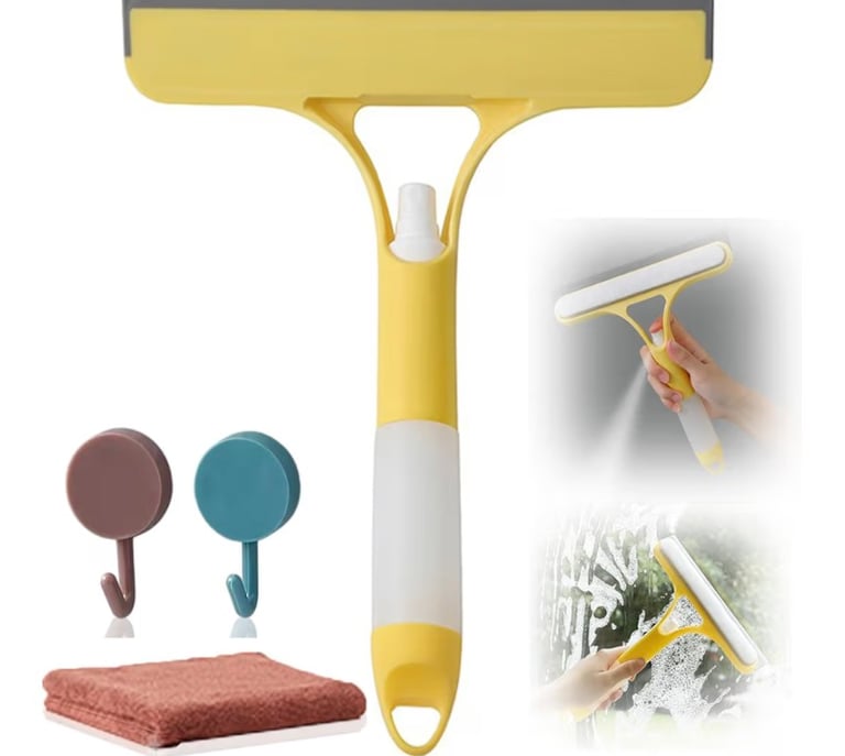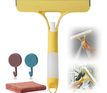 A practical 3-in-1 window cleaning tool that combines a squeegee, scrubber sponge, and built-in sprayer for fast, streak-free cleaning. Ideal for glass, tile walls, shower doors, car windows, and bathroom surfaces. The all-in-one design saves time and effort, making everyday cleaning easier and more efficient.