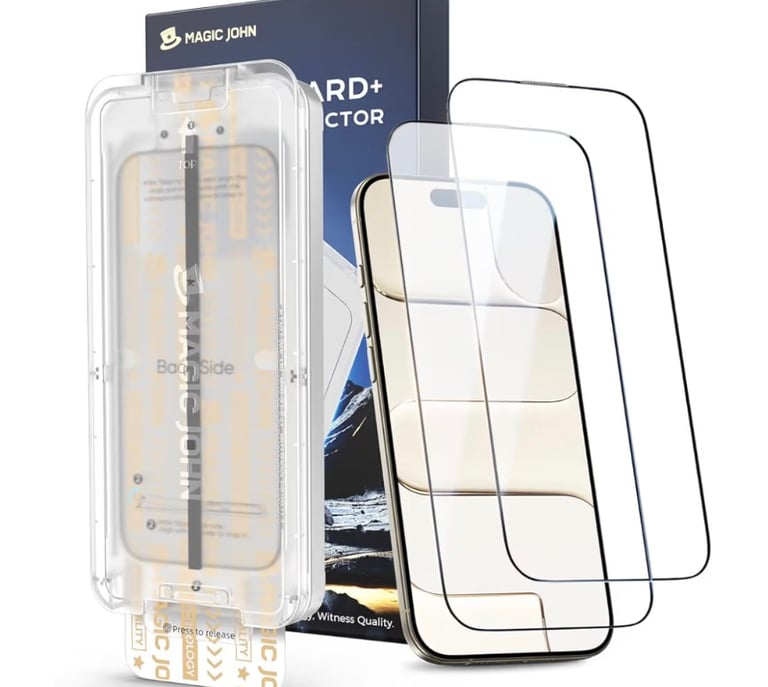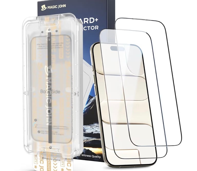 An upgraded third-generation tempered glass screen protector designed for iPhone Air with a 6.5-inch display. It delivers HD clarity, shatterproof protection, and auto dust-elimination technology for a bubble-free finish. Easy to install and supplied in a convenient 2-pack for long-lasting screen protection.