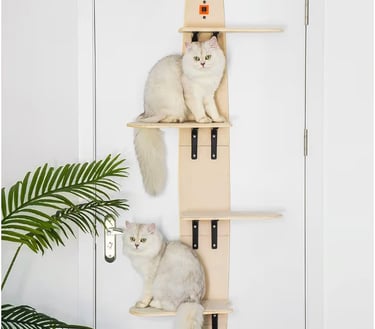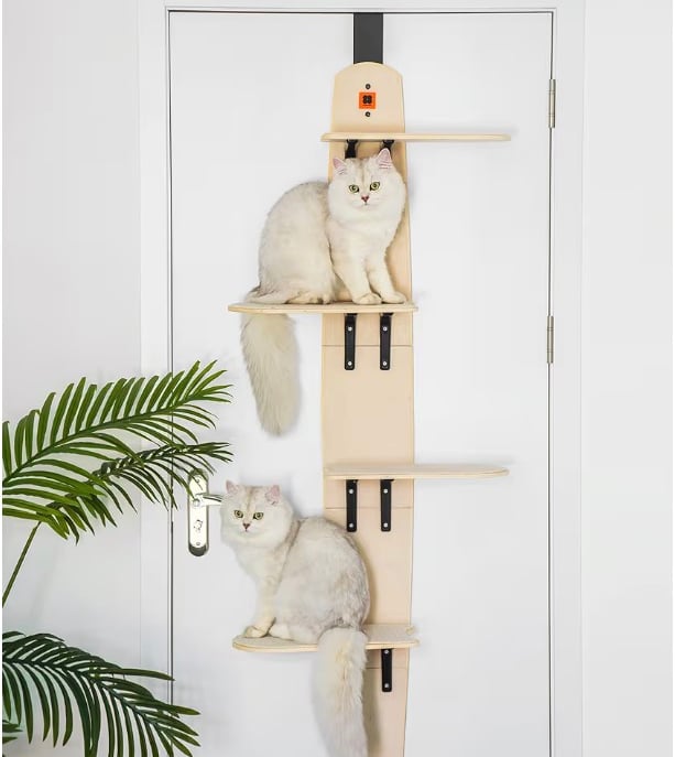 The MEWOOFUN 4-Levels Door Hanging Cat Climber is a space-saving vertical cat tower designed to keep your feline active and entertained. It easily mounts on any standard door and features four carpeted platforms for climbing, lounging, and scratching. Perfect for indoor cats, it offers a fun way to exercise while protecting your furniture.