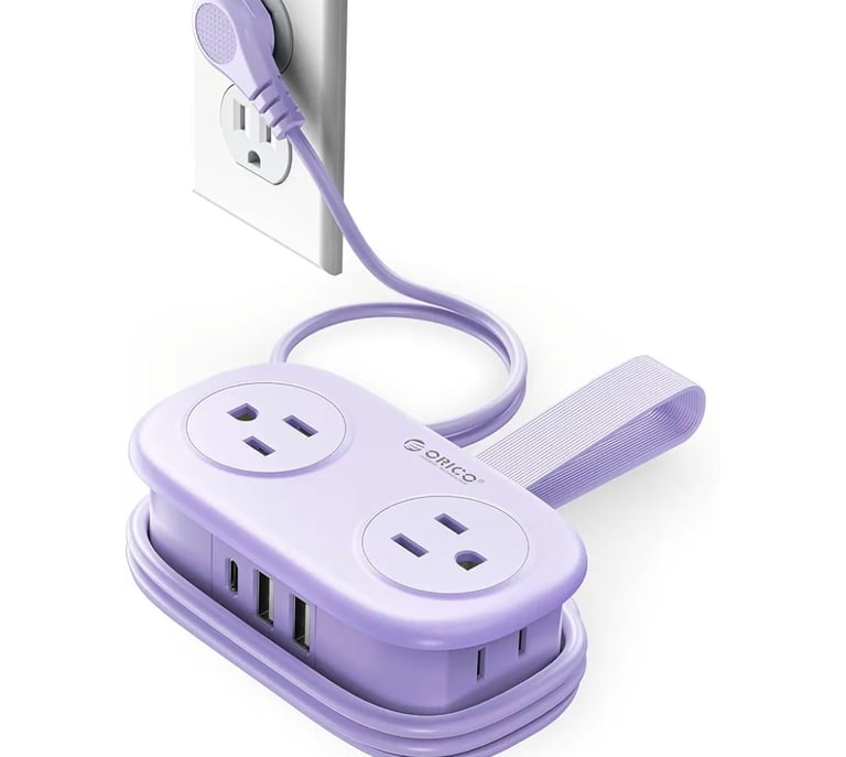 The 4FT Purple Travel Power Strip is a compact and practical charging solution. With 4 AC outlets, 2 USB-A ports, and 1 USB-C port, it handles multiple devices at once. The 45° flat plug saves space, making it ideal for travel, dorms, offices, or home use. Lightweight and easy to pack, it’s a reliable everyday essential.
