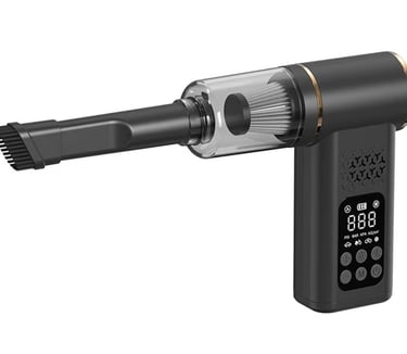 A powerful and portable all-in-one solution for car care and everyday cleaning. This 5-in-1 cordless car vacuum combines strong suction with a built-in tire inflator, digital pressure gauge, and LED light for emergency use. Ideal for cars, homes, pet hair cleanup, motorcycles, bicycles, and even inflating balls. Compact, rechargeable, and easy to carry, it’s a must-have tool for drivers and outdoor use.
