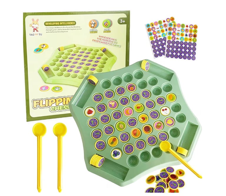 The 54PCS Fruit Flip Chess Memory Game is an exciting educational board game designed to improve children’s memory, concentration, and cognitive skills through fun gameplay. Featuring colorful fruit patterns, players flip and match pieces while training their observation and thinking abilities. Perfect for kindergarten learning, family game nights, and party activities, this interactive game encourages social interaction, patience, and friendly competition. Made from safe and durable materials, it’s ideal for young children and provides both entertainment and educational value in one engaging activity.