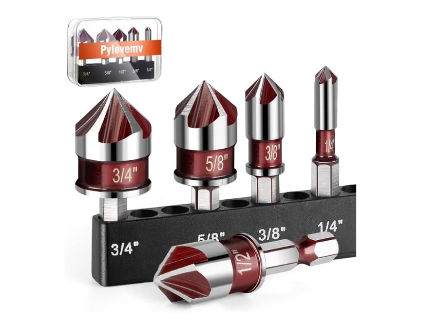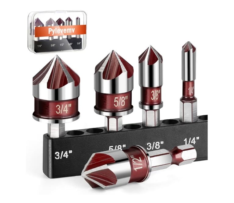 The 5Pcs Countersink Drill Bit Set is a practical tool set designed to create clean chamfered holes so screw heads sit flush with the surface. With an 82-degree cutting angle and five-flute design, these bits help produce smooth and accurate countersinks while reducing vibration.