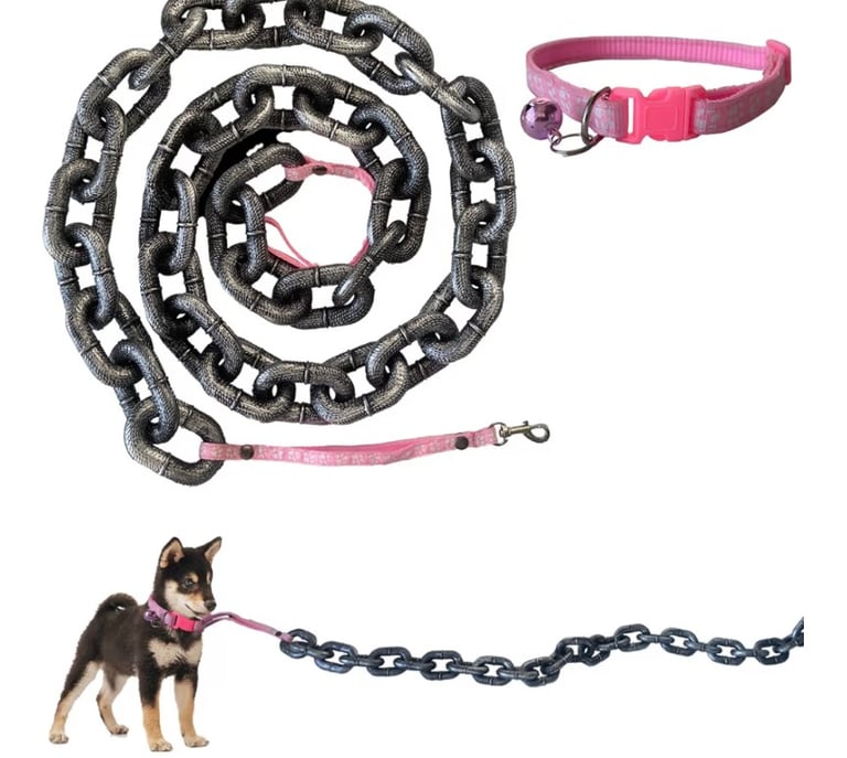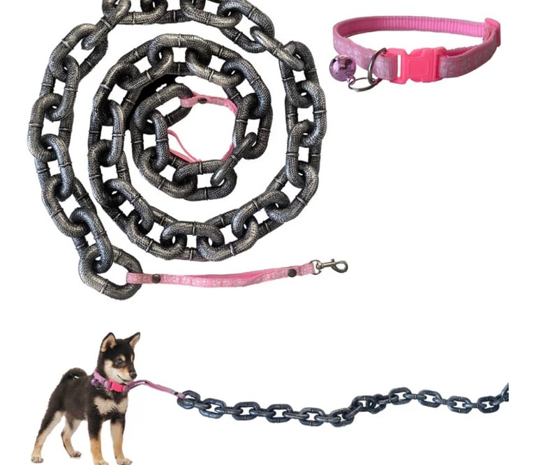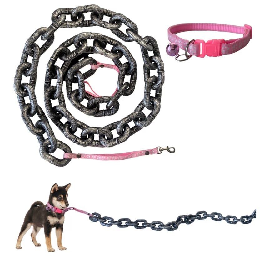 A fun and eye-catching dog leash designed to look like a giant plastic chain, perfect for adding humor to daily walks. Lightweight yet sturdy, it comes with a puppy collar and is suitable for small dogs, cats, and puppies. Ideal for photos, gifts, or anyone who wants a unique and funny pet accessory.
