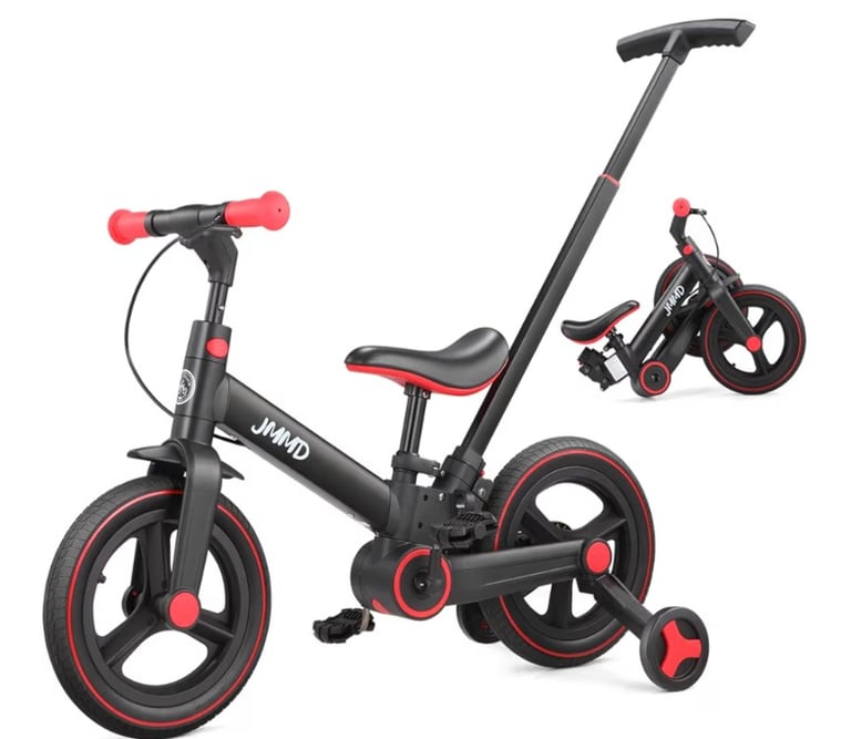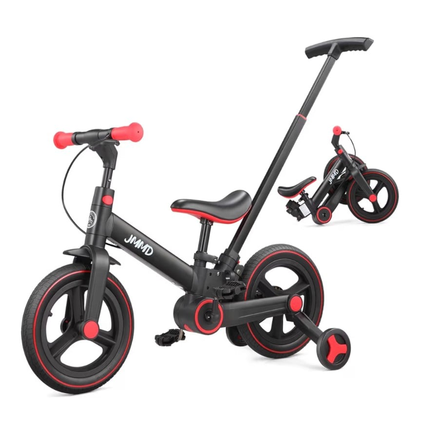 The JMMD 6-in-1 Toddler Bike is a versatile, grow-with-me ride designed for children aged 18–60 months. It easily converts between a push tricycle, balance bike, and pedal bike—helping toddlers build balance, coordination, and confidence step by step. The 12-inch foldable frame, removable push handle, training wheels, pedals, brakes, and kickstand make it adaptable for every stage, while compact folding simplifies storage and travel.