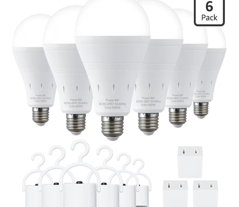A reliable set of rechargeable emergency LED light bulbs designed to keep your home bright during power outages and emergencies. Each bulb features a built-in 1200mAh battery, energy-efficient 9W output (60W equivalent), and bright 6000K daylight color. Works with standard E26 sockets and automatically switches on during outages, making them ideal for home backup lighting, camping, hurricanes, and emergency preparedness.