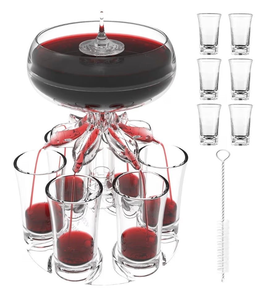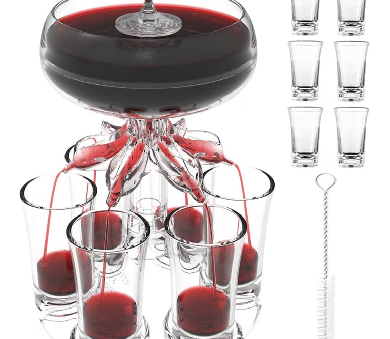 The ALEVMOOM 6 Shot Glass Dispenser is a fun and practical bar accessory designed to fill multiple shot glasses at once with ease. Made from durable acrylic, this touchless dispenser evenly distributes your favorite beverages into six glasses simultaneously, saving time and preventing spills. Perfect for parties, gatherings, and home bars, it adds a unique and entertaining touch to serving drinks like cocktails, juice, or other liquids. Easy to use and clean, this dispenser is a must-have tool for anyone who loves hosting and creating memorable moments.