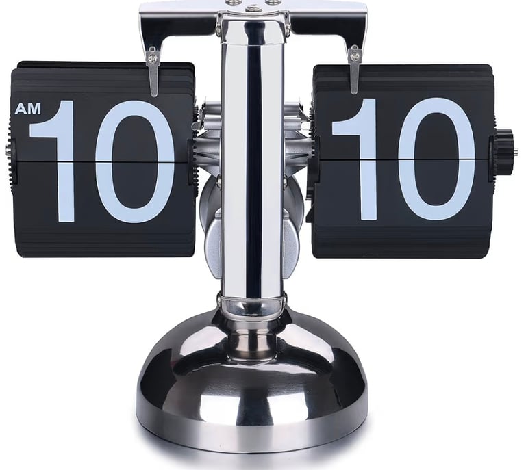 The Auto Flip Clock is a stylish retro timepiece that brings a touch of vintage charm to any space. Battery-powered and featuring large, easy-to-read numbers, it’s perfect for your office, bedroom, kitchen, school, hotel, or café. Its classic flip mechanism and minimalist black design make it both functional and decorative — a true statement piece for lovers of timeless style.