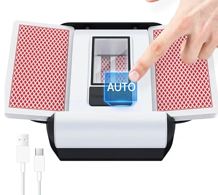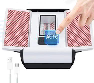 The Automatic Card Shuffler / 2-in-1 Card Shuffler & Dealer is a compact and ultra-quiet machine that perfectly shuffles your cards without jams. Designed for Uno, poker, or any card game, it’s lightweight and travel-friendly, making it the perfect addition for game nights, trips, or parties.