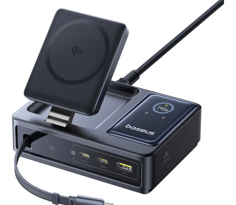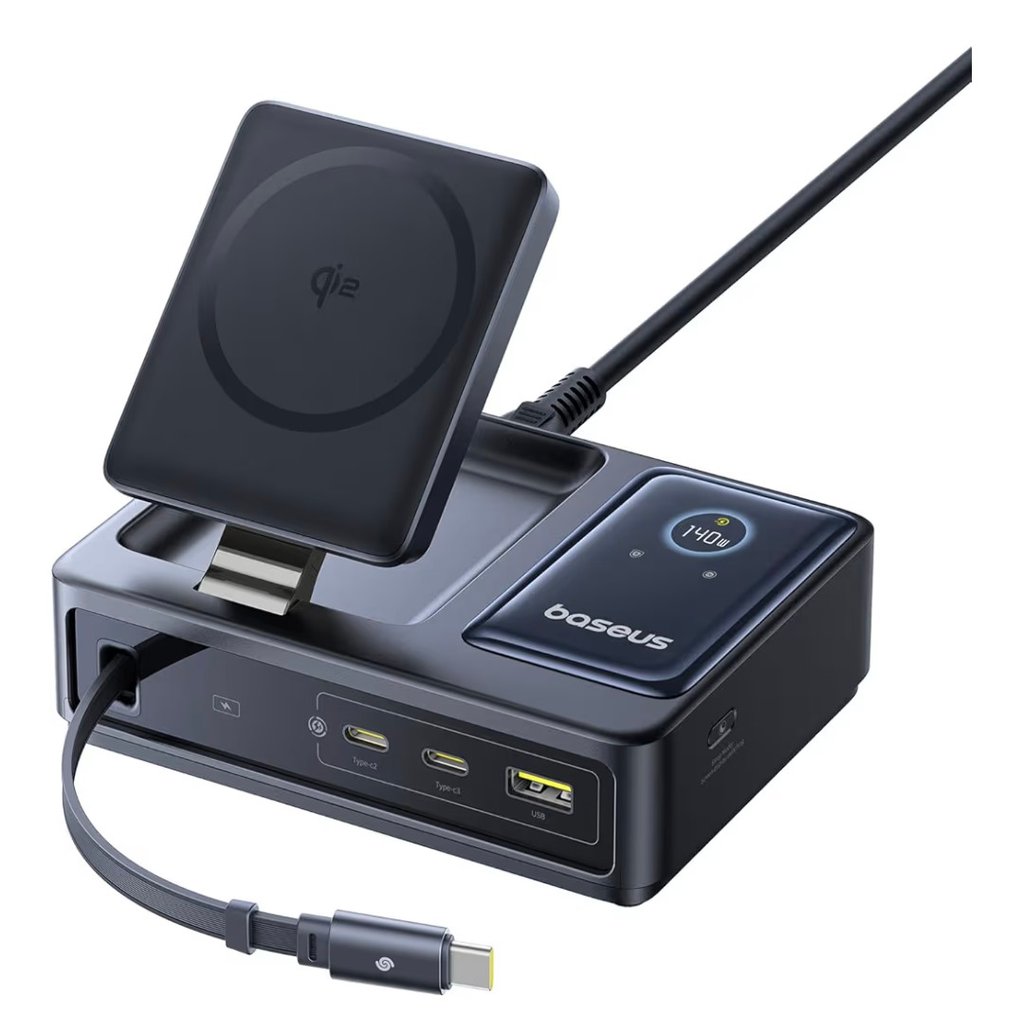 Baseus Nomos 5-in-1 140W Charging Station – Magnetic Wireless & GaN Fast Desktop Charger