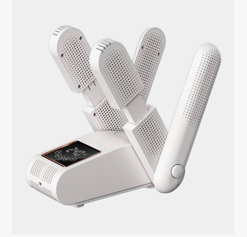 A powerful shoe and boot dryer with a heat blower that quickly dries work boots, shoes, and gloves while keeping them warm. It features UV dual light purification to help reduce odors, plus an intelligent timer for safe and efficient drying. Ideal for daily use, especially in cold or wet conditions.