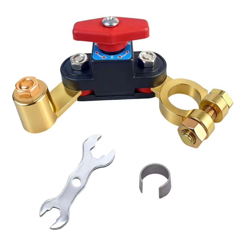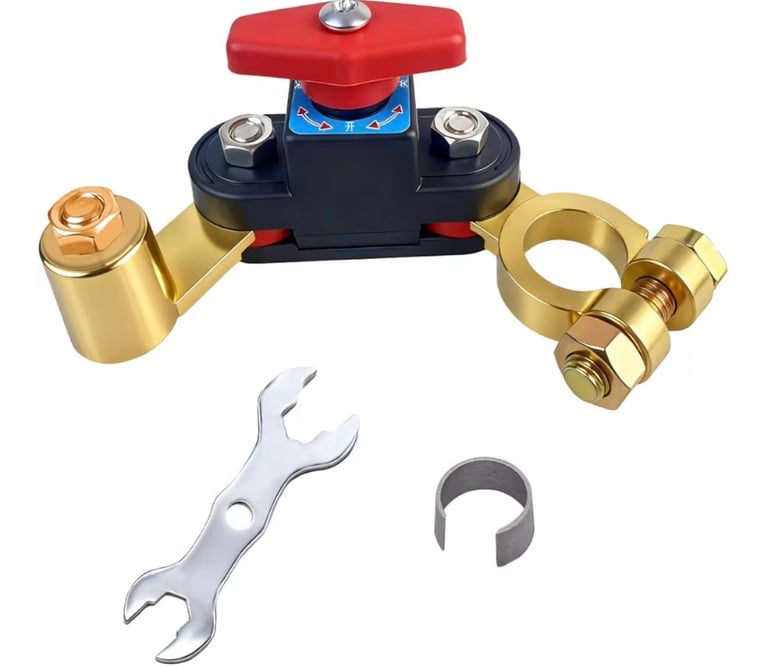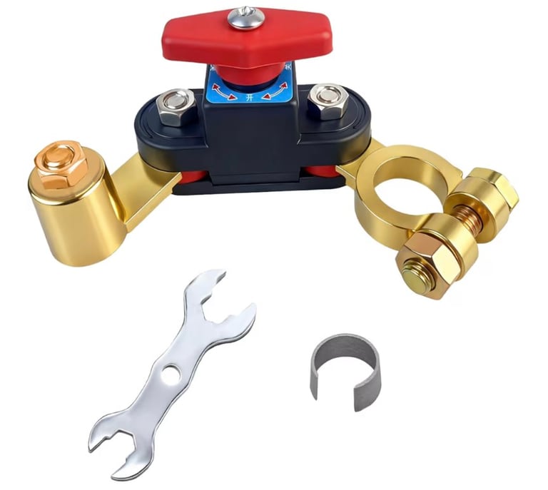 A smart and reliable battery disconnect switch designed to cut off power safely and prevent battery drain. Made from high-conductivity pure copper for stable transmission and minimal power loss. Adjustable and compatible with 12V–24V systems, it’s ideal for cars, trucks, boats, RVs, and other vehicles. Enhances safety, extends battery life, and simplifies maintenance.