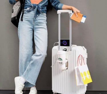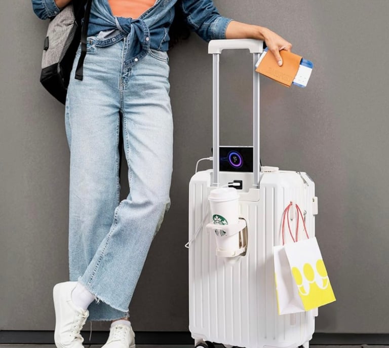 The Carry-on Luggage with Cup Holder & USB Charging Port is the perfect travel companion for modern adventurers. Its hard shell design keeps your belongings safe, while spinner wheels ensure smooth movement. Stay refreshed and powered up with the built-in cup holder and USB port — making travel easier, smarter, and more stylish for business or leisure trips.