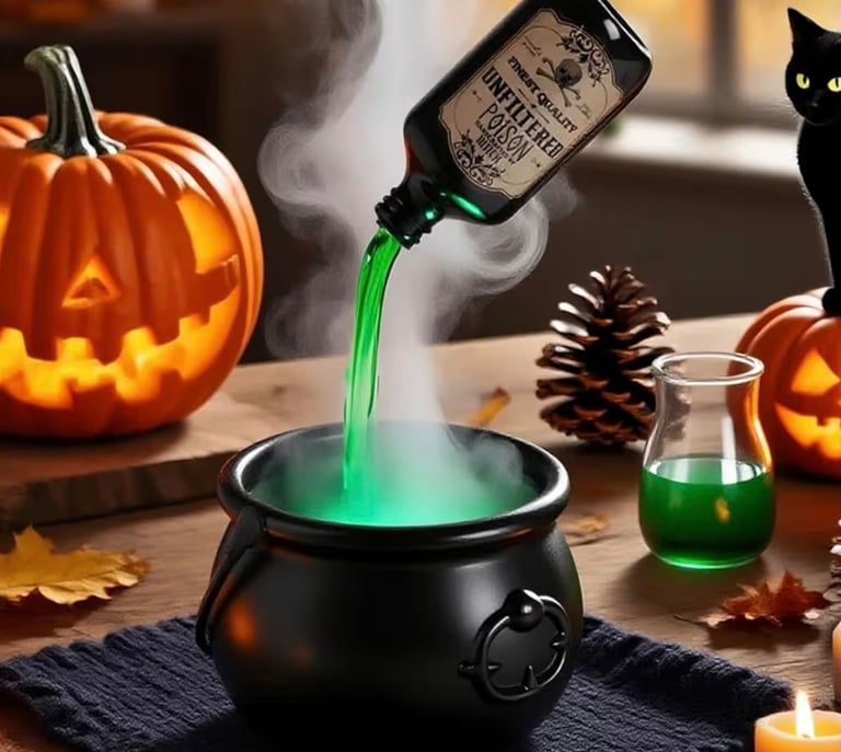 This Cauldron Halloween Decor features floating potion bottles and a fog maker that creates a mystical, spooky atmosphere — perfect for Halloween parties, haunted home setups, or mantle displays. It’s an eye-catching decoration that brings magical vibes to any Halloween night.