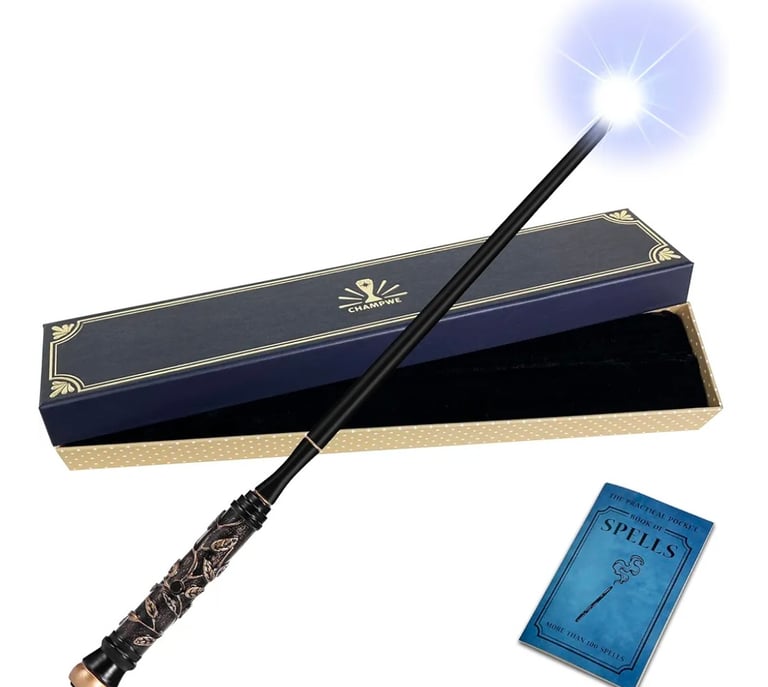 The ChampWe Light Up Magic Wizard Wand is a fun rechargeable toy for kids and cosplay lovers. It lights up for a magical effect and comes with a spellbook and gift box, making it perfect for play, costumes, or as a special gift.