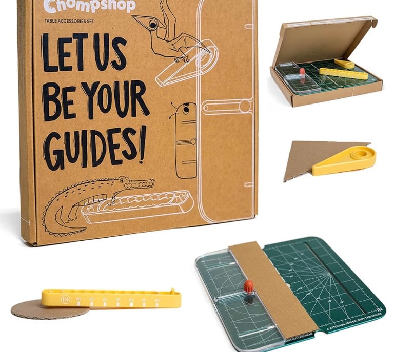 The ChompSaw Accessory Set transforms creative projects into precision crafting fun! This smart kit includes a fence, circle-cutting tool, and angle guide, designed for accurate cardboard cutting and model-making. Ideal for STEM and STEAM education, it helps kids and hobbyists learn hands-on geometry, design, and engineering skills. Perfect for classrooms, makerspaces, or DIY enthusiasts who love building with creativity and precision.