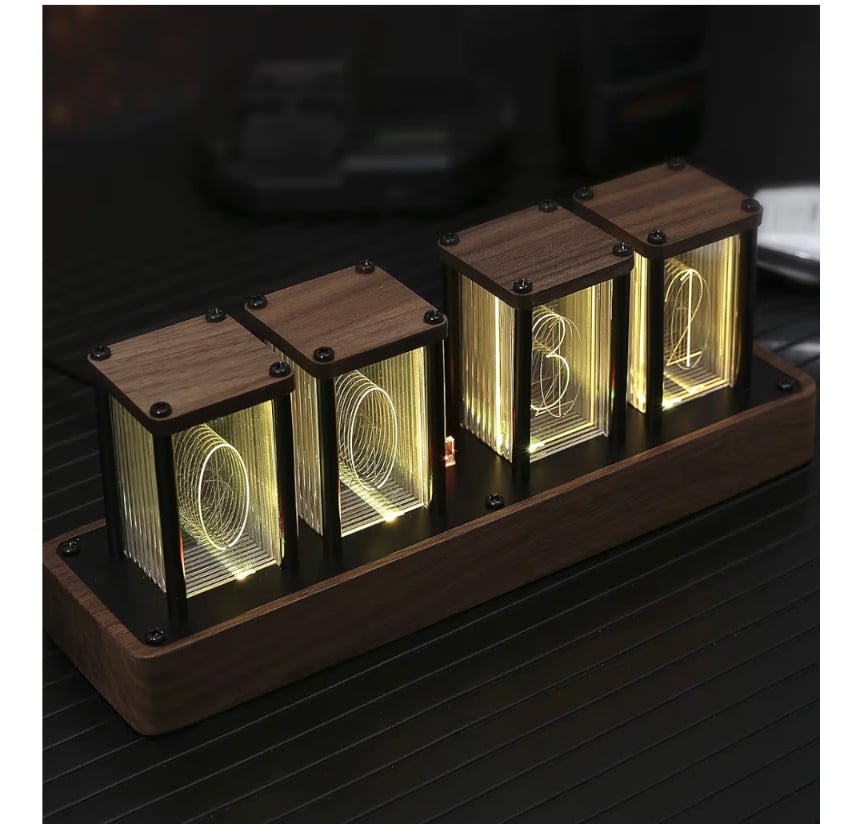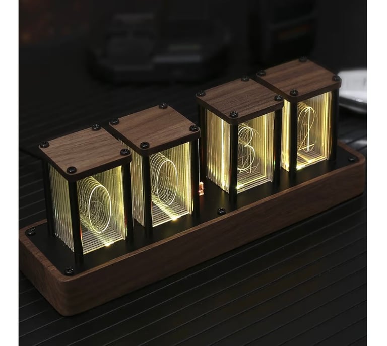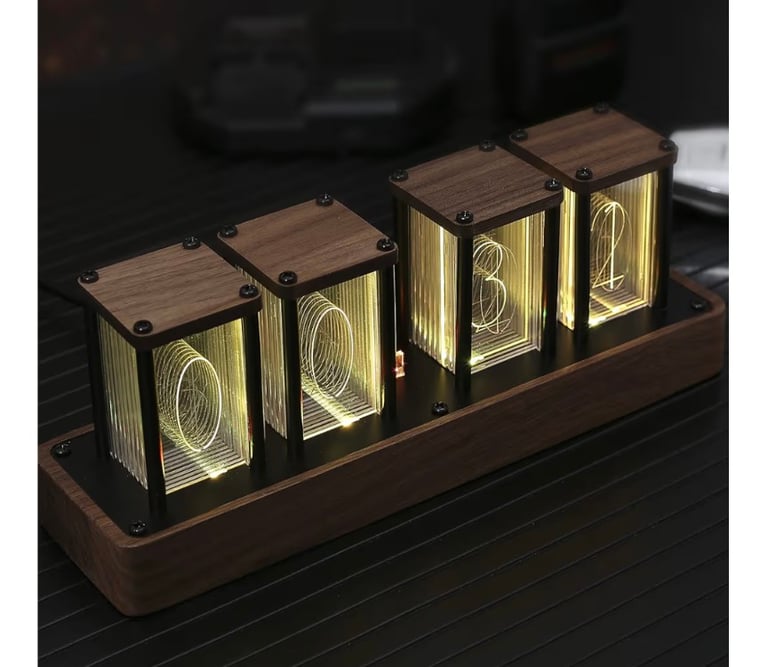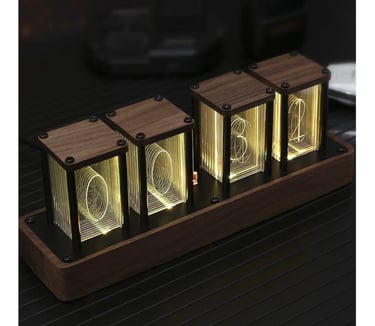 A beautifully crafted retro-style digital clock that blends classic Nixie tube aesthetics with modern technology. The ClocTeck Nixie Tube Clock features a walnut wood finish, Wi-Fi time synchronization for accurate timekeeping, and supports alarm and timer functions with 12/24-hour display options. Perfect as a stylish desk or shelf décor piece, it also makes a unique and thoughtful gift for friends who love vintage design and smart gadgets.