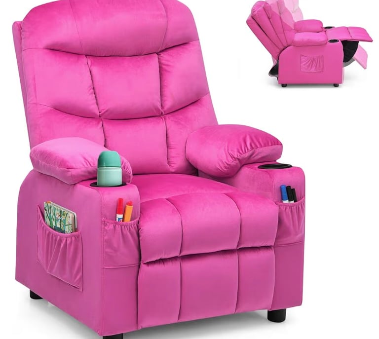 The Costzon Kids Velvet Recliner Chair is the ultimate mix of comfort and style for your little one’s room. Wrapped in soft velvet fabric with an adjustable backrest, built-in footrest, and cup holder, it offers a cozy spot for reading, watching TV, or relaxing. The side pockets are perfect for keeping books or toys close by. Designed with ergonomic support and durable construction, it’s a thoughtful and adorable gift for any child’s bedroom.