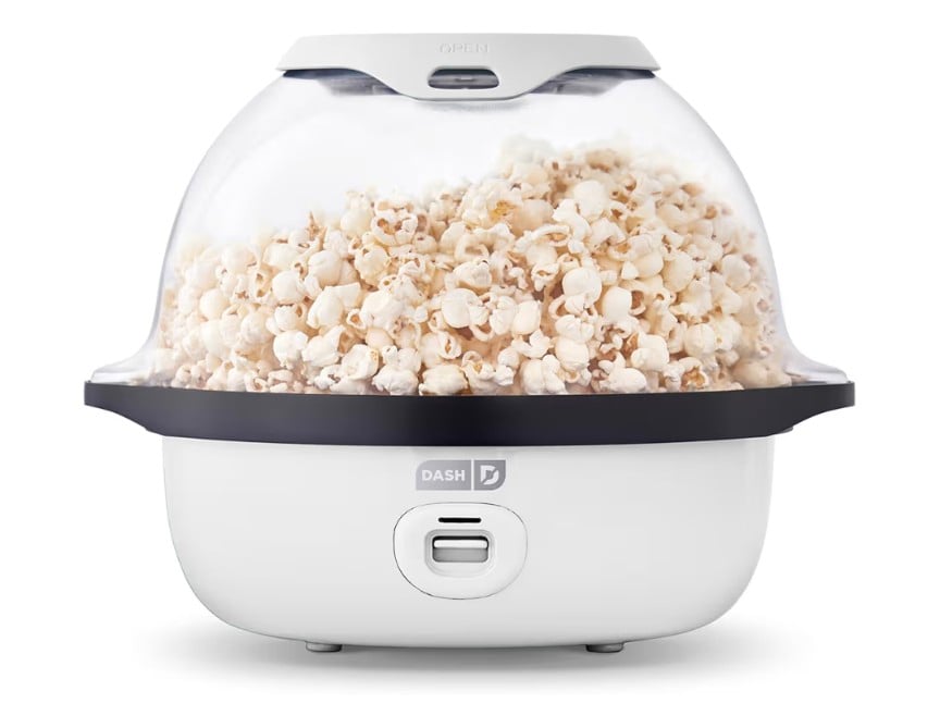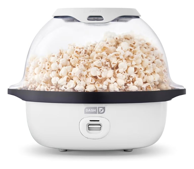 An easy and fun way to make fresh popcorn at home. The Dash SmartStore electric popcorn maker features a built-in stirring bar for even popping, a butter-melting tray for rich flavor, and a clear serving bowl so you can watch the popcorn pop in real time. With a generous 24-cup capacity and compact SmartStore design, it’s perfect for movie nights, family gatherings, and parties.