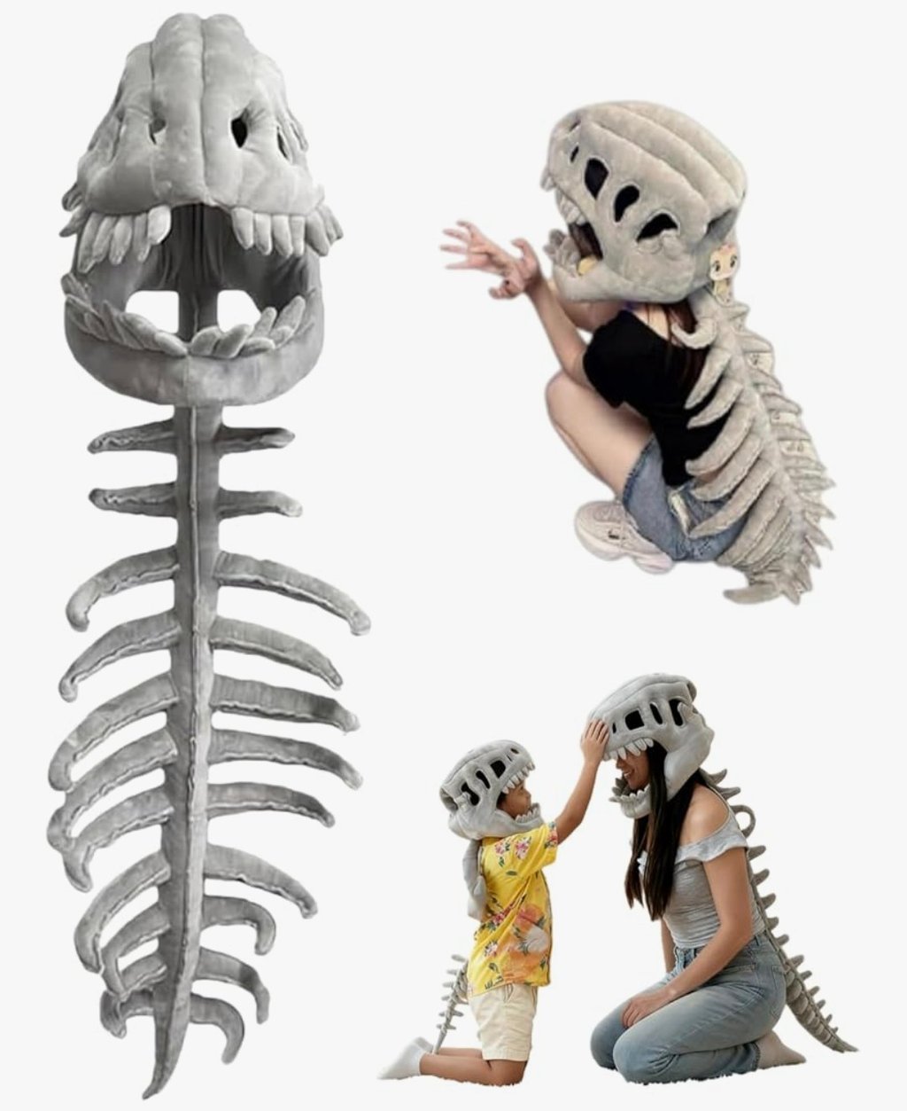 Dinosaur Skeleton Costume – 3D Spinosaurus Skull Mask & Plush Spine