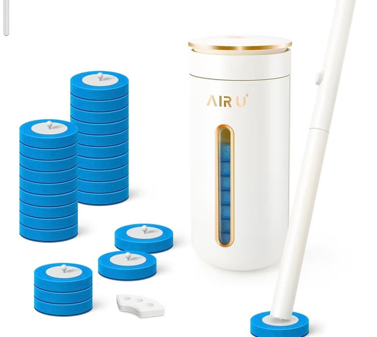 The AIR U+ Disposable Toilet Brush offers a cleaner, more hygienic way to scrub your toilet. This all-in-one toilet cleaning system includes a wand handle, storage caddy, and 24 disposable brush heads preloaded with cleaner for easy, mess-free use. With a fresh fragrance tablet, it leaves your bathroom spotless and smelling great after every use.