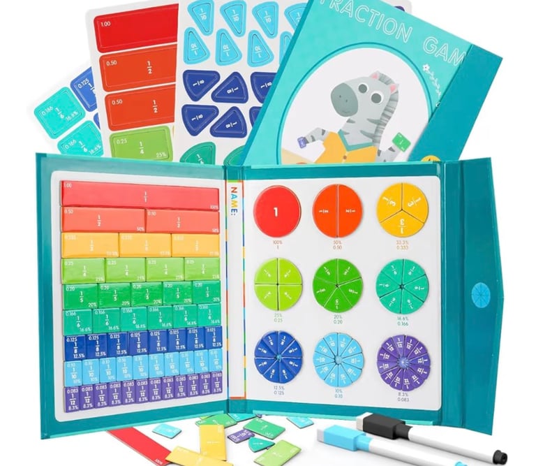 The Educational Highly Magnetic Fraction Puzzle is a hands-on learning tool designed to help children understand fractions in a fun and interactive way. Featuring colorful magnetic pieces, this Montessori-style puzzle allows kids to visually explore parts and wholes while developing essential math skills. Ideal for classrooms and homeschooling, it encourages active learning, critical thinking, and problem-solving. The strong magnetic design keeps pieces securely in place, making it easy to use on boards or flat surfaces for engaging educational activities.
