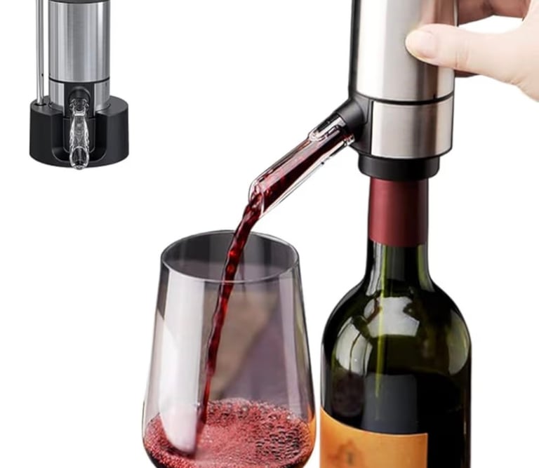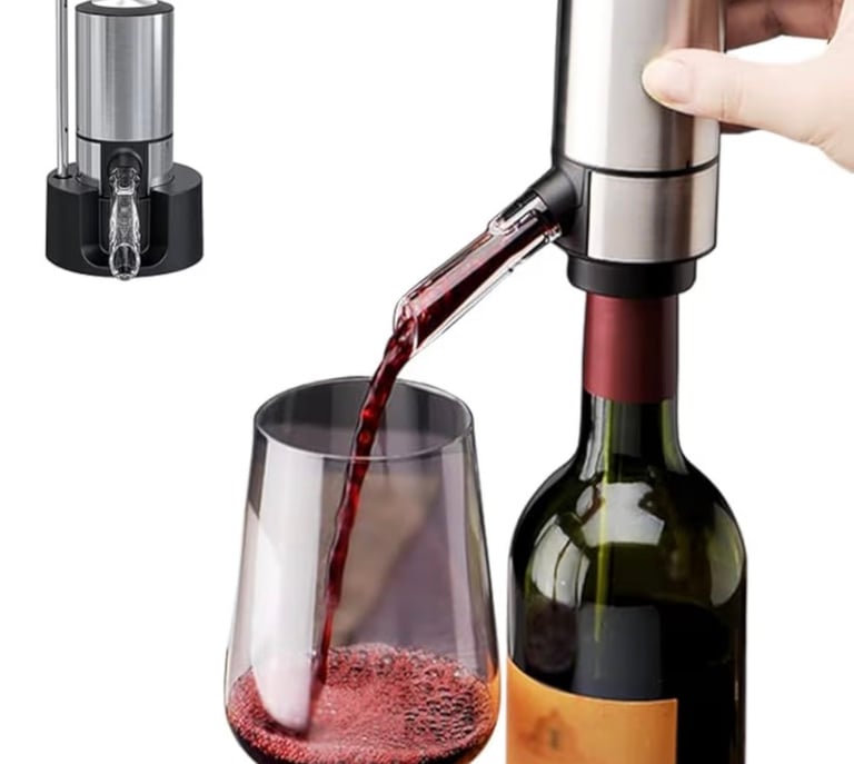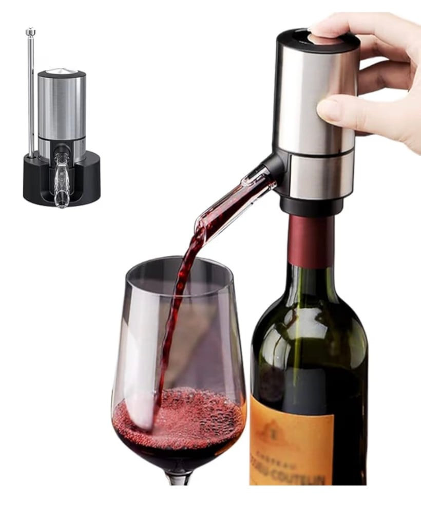 A sleek electric wine aerator designed to enhance flavor and aroma with smooth, instant pouring. Ideal as a gift for wine lovers, it works as a decanter, dispenser, and pourer in one compact device. Perfect for home use, parties, or corporate gifting, delivering an elegant and mess-free wine experience.