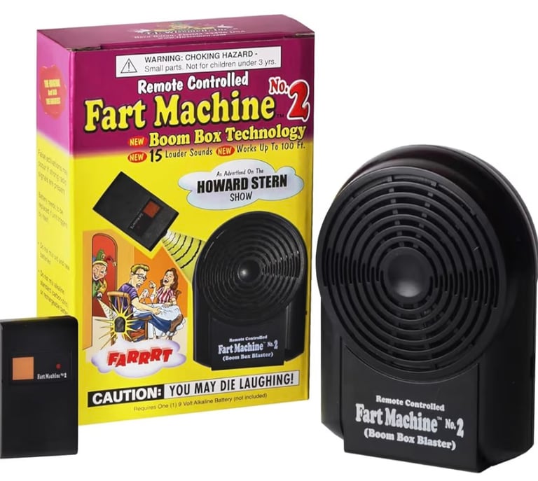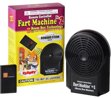 The Fart Machine #2 is the classic remote-controlled prank toy that delivers 15 realistic fart sounds using Boom Box technology for extra volume and laughs. With a wireless range up to 100 feet, it’s the perfect gag gift to surprise friends and family anytime, anywhere!