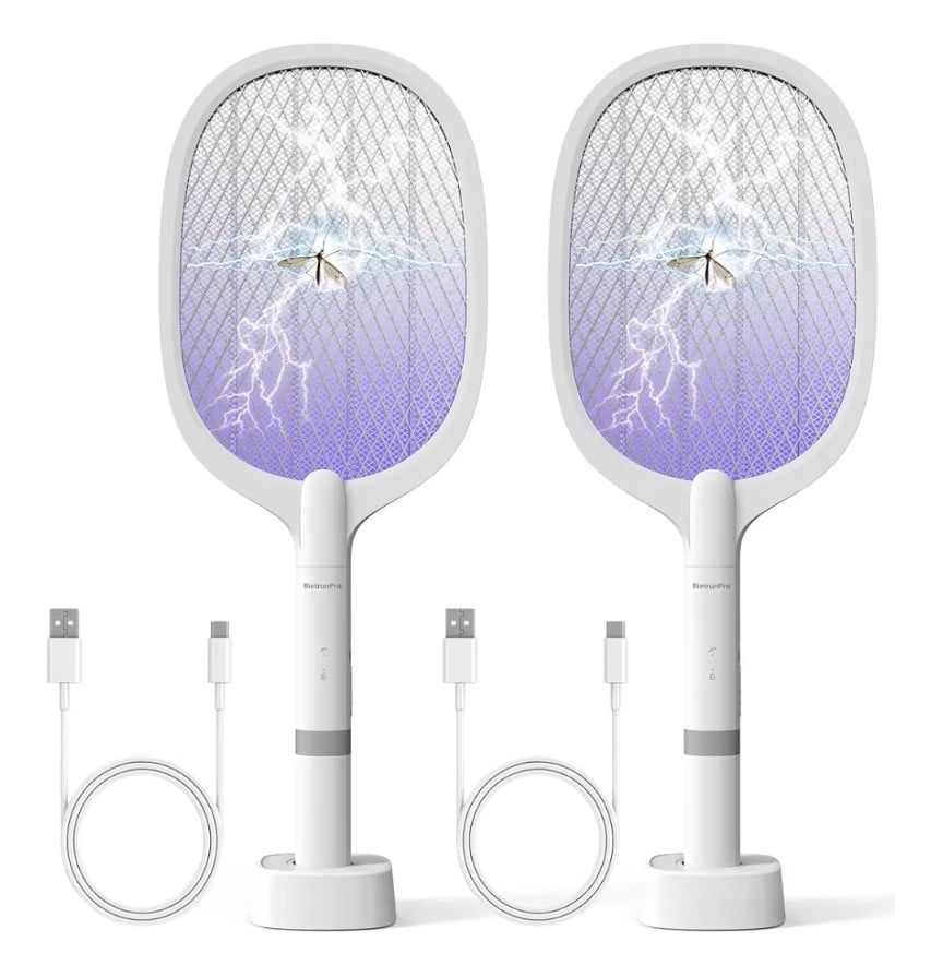 The Fly Swatter Electric (2 Pack) is a rechargeable handheld mosquito racket designed to quickly eliminate flying insects indoors or outdoors. Using a high-voltage electric grid, it instantly zaps mosquitoes, flies, gnats, and other small bugs when they touch the mesh.