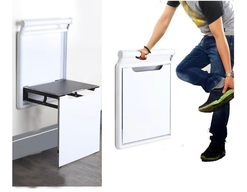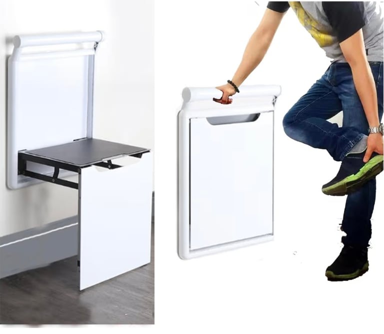 Foldable Wall-Mounted Stool with Armrest – Shower & Shoe Changing Seat