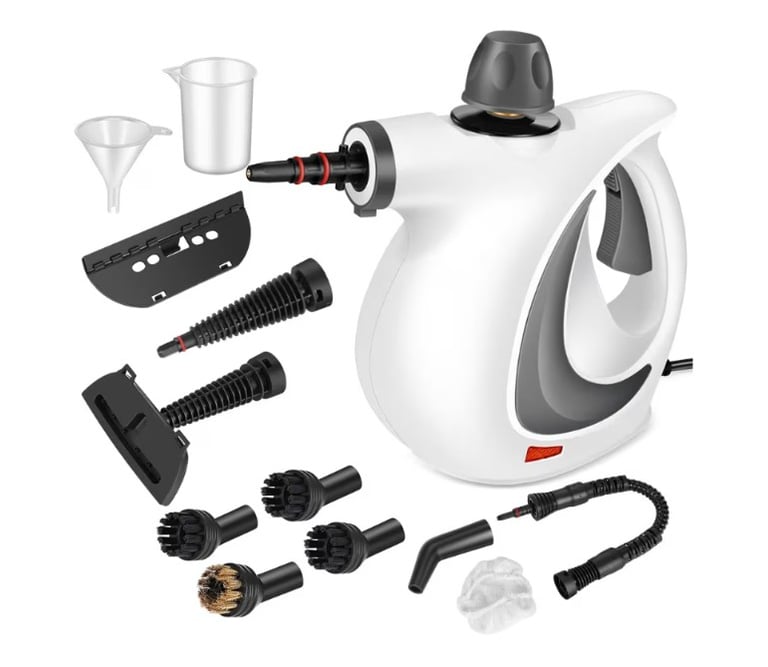 A powerful handheld steam cleaner designed for deep, chemical-free cleaning around the home and car. Using high-pressure hot steam, it removes grease, dirt, and grime from floors, grout, tiles, upholstery, furniture, and car interiors. The included 12-piece accessory set lets you tackle tight corners, fabrics, and hard surfaces with ease. Compact, efficient, and easy to use, it’s an ideal solution for thorough everyday cleaning.
