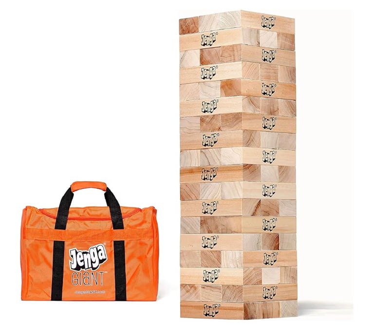 The Jenga GIANT Hardwood Block Game brings the classic stacking game to a whole new level of excitement. Made from high-quality hardwood blocks, this officially licensed giant version stacks up to over 5 feet tall during gameplay. Players take turns carefully removing and stacking blocks while trying to keep the tower from falling. Perfect for family gatherings, outdoor parties, events, and game nights, this oversized Jenga game adds suspense, laughter, and friendly competition to any occasion.