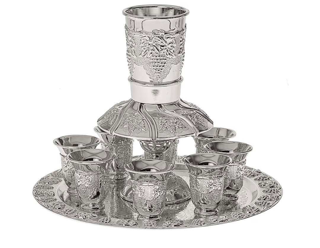 Jerusalem Motifs Silver Plated 6 Cup Kiddush Wine Fountain