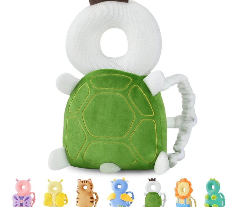 The JunNeng Baby Head Protector Backpack is designed to help protect toddlers while learning to walk and explore. Featuring a soft cushioned pad shaped like a cute green turtle, it absorbs impact and helps reduce the risk of head and back injuries during falls. The lightweight and breathable material ensures comfort for daily wear, while adjustable shoulder straps provide a secure and flexible fit as your child grows. Ideal for home use, daycare, and outdoor play, this safety backpack gives parents extra peace of mind during early walking stages.