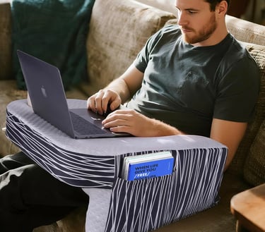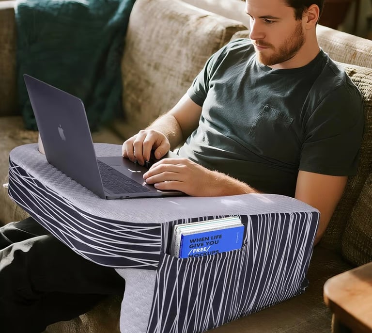 This Lap Desk for Laptop features an extra-large 22-inch surface and a comfortable memory foam cushion, making it perfect for working, reading, or gaming from your bed or sofa. It includes a side pocket and cup holder for convenience, offering both comfort and functionality for adults and kids alike.