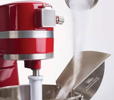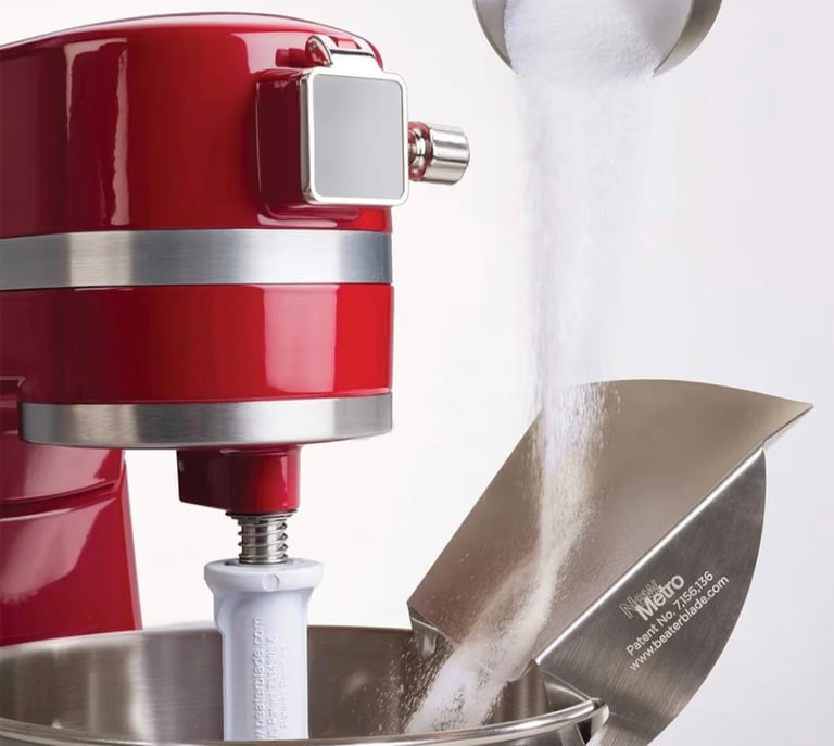 The Metro Design PC-10 Pouring Chute is a convenient accessory compatible with KitchenAid stand mixers with stainless steel bowls. It allows for mess-free pouring of ingredients directly into the mixer, saving time and reducing spills. Its durable silver design ensures long-lasting use and seamless integration with your kitchen setup.