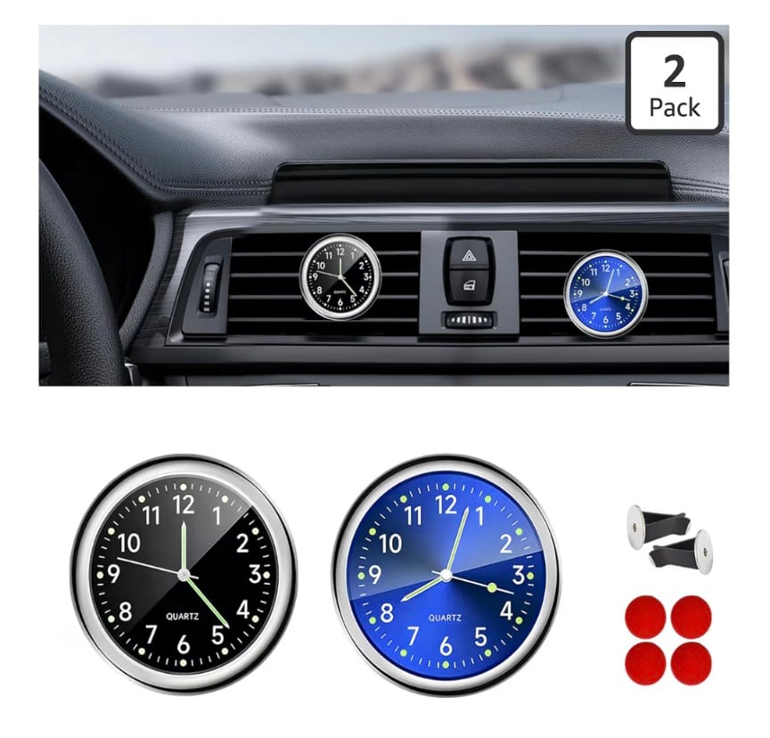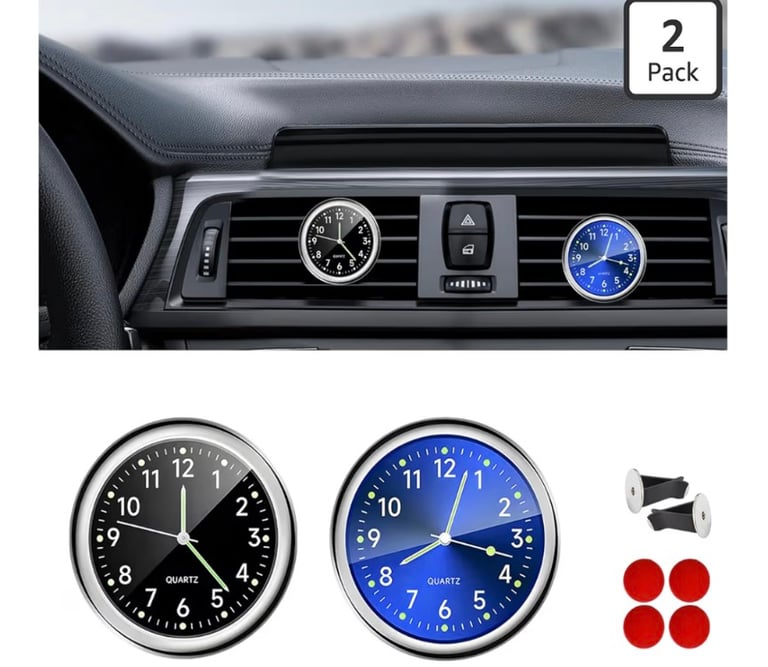 The 2PCS Stick-On Dashboard Car Clock is a compact and practical timepiece designed to keep the time visible while driving. Its mini analog design with luminous hands makes it easy to read the time even at night without distracting light.