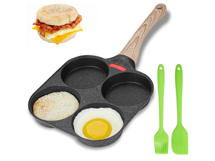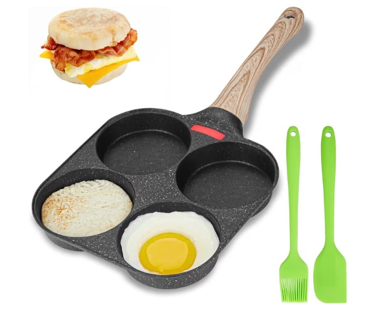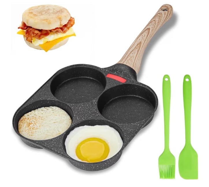 A versatile nonstick frying pan designed with 4 separate cups, making it easy to cook eggs, pancakes, burgers, or sandwiches all at once. The nonstick coating ensures effortless food release and quick cleaning, while the smart design helps you create perfectly shaped breakfasts every time. Compatible with both gas stoves and induction cooktops, it’s a practical tool for fast, organized cooking at home.
