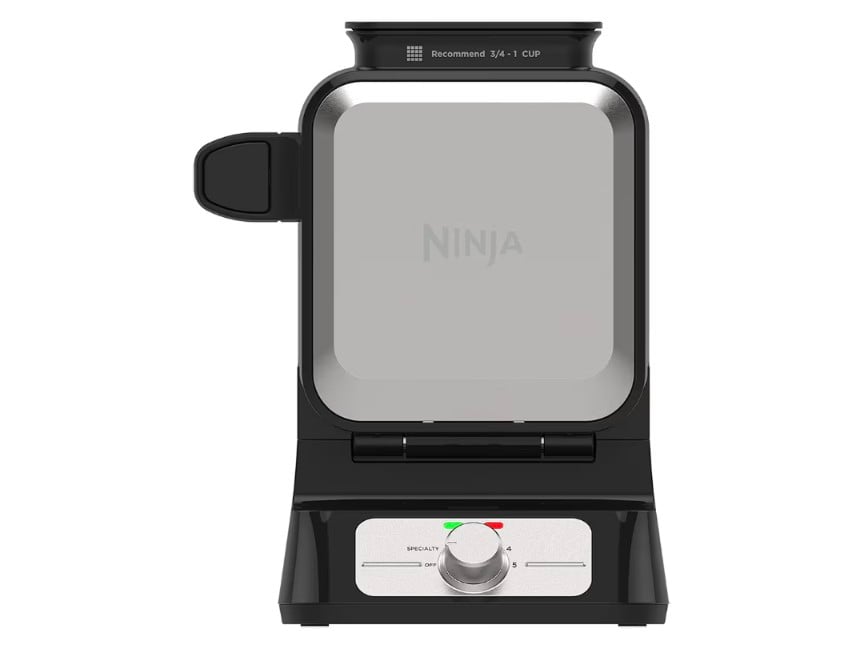 A premium Belgian waffle maker with a smart vertical design that ensures even batter distribution and perfect results every time. Featuring Ninja NeverStick PRO coating, five shade settings for customized crispness, and a precision-pour cup to prevent mess. Comes with a chef-curated recipe guide, making it easy to create thick, fluffy waffles at home with professional results.