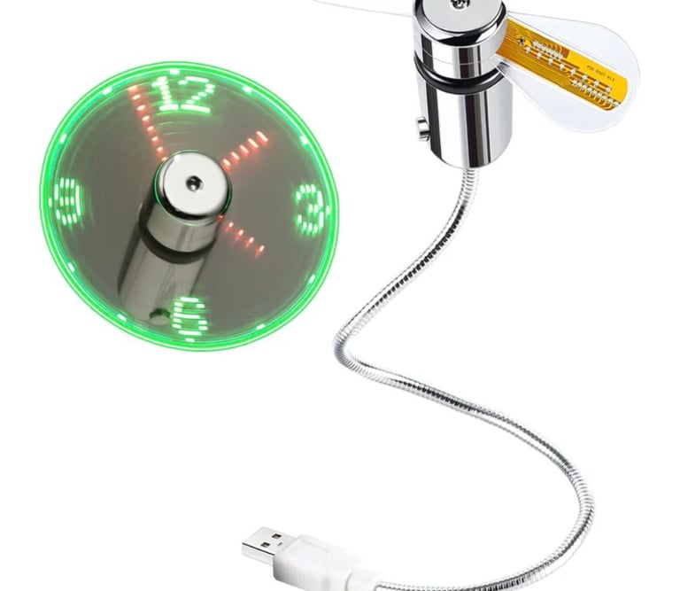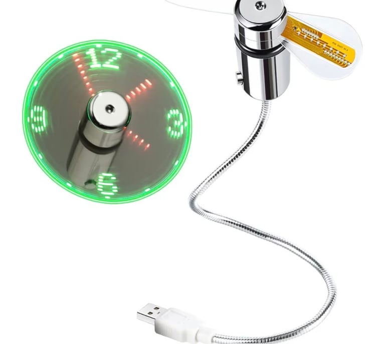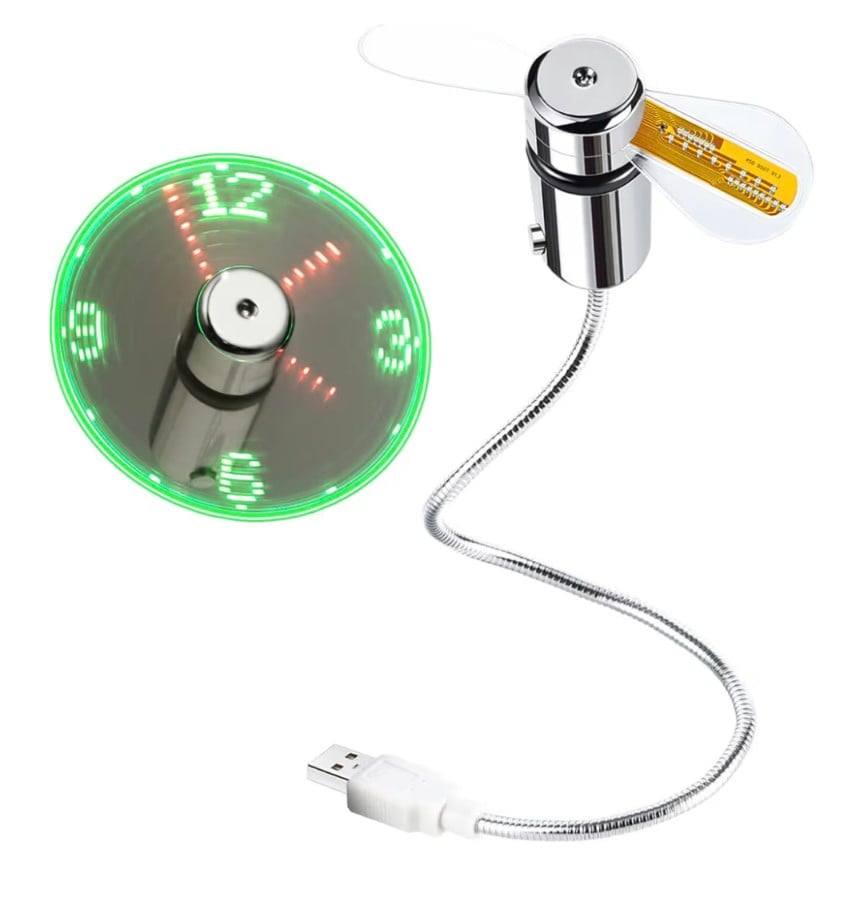 A fun and practical USB-powered clock fan that displays real-time time using bright LED lights while keeping you cool. Compact and easy to use, it’s a great gadget for desks and laptops, making it a perfect stocking stuffer, Christmas gift, or Father’s Day present. Backed by a 1-year warranty for peace of mind.