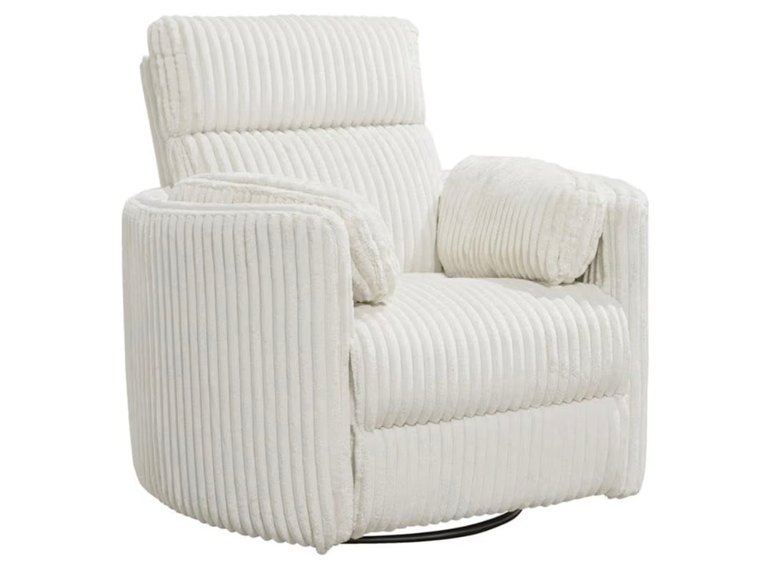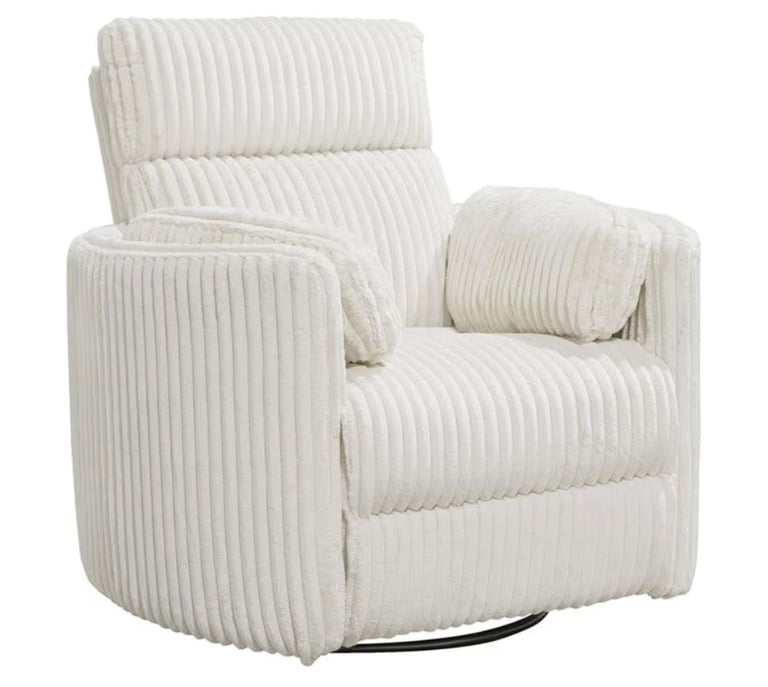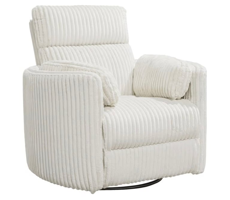 Relax in modern elegance with the Parker Living Radius Swivel Glider Recliner. Wrapped in soft ivory fabric, this recliner offers 360° swivel motion, smooth gliding, and easy reclining for ultimate comfort. Its sleek, contemporary silhouette fits perfectly in living rooms, nurseries, or reading corners, while the plush cushioning ensures luxurious relaxation. Durable, stylish, and cozy — the perfect blend of form and function.