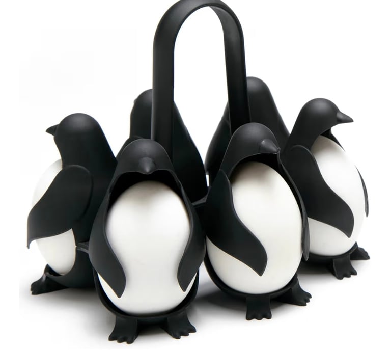 The PELEG DESIGN Egguins is a fun and practical 3-in-1 penguin-shaped egg holder that lets you cook, store, and serve eggs with ease. Designed to hold up to 6 eggs, it makes boiling soft or hard eggs simple and mess-free. Just load the eggs, dip the penguin family into boiling water, and lift them all out together! Perfect for breakfast lovers, kitchen décor enthusiasts, or as a cute gift idea.