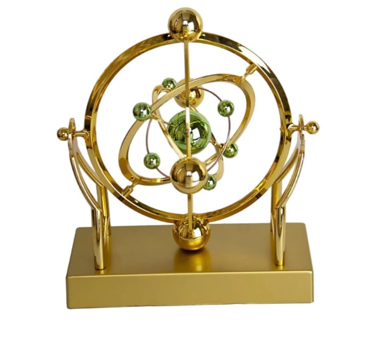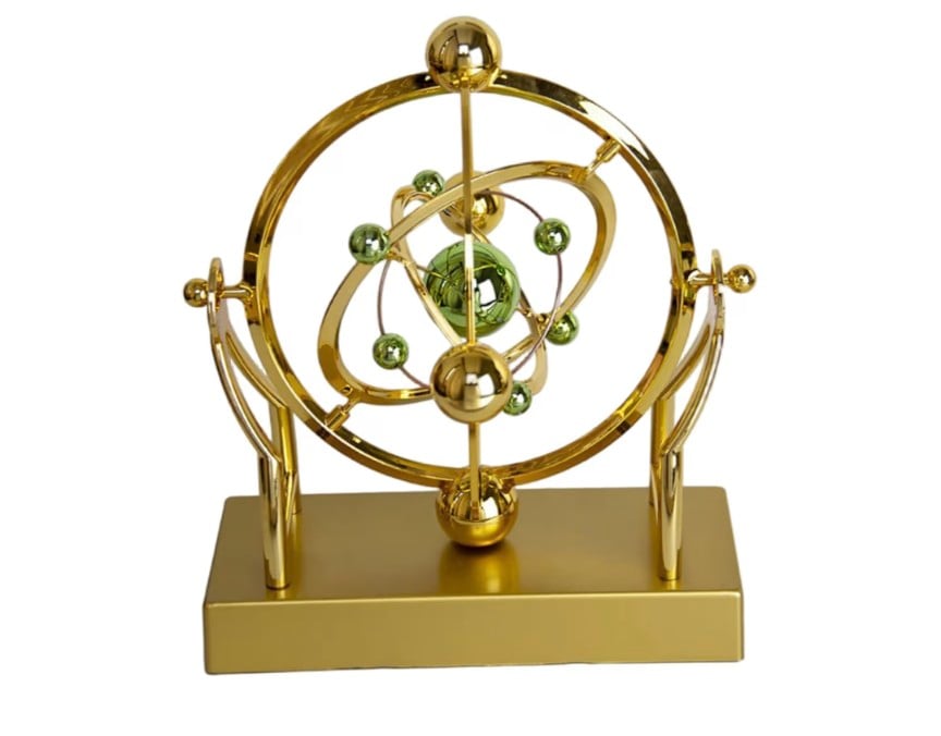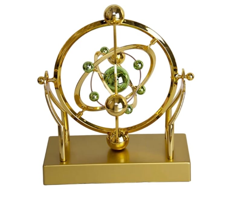 A captivating battery-operated perpetual motion desk toy inspired by cosmic and celestial design. This golden physics desk ornament creates a continuous motion effect that’s mesmerizing to watch, making it a perfect office accessory or study décor piece. Lightweight and elegant, it adds a touch of science, curiosity, and relaxation to desks, shelves, and workspaces.