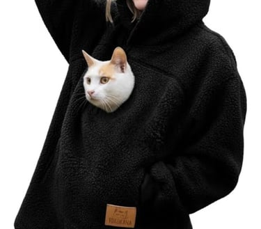 The Pet Carrier Hoodie with Cat Pouch is a cozy, fleece-lined hoodie that lets you cuddle your furry friend wherever you go. Designed with an adjustable pouch opening to safely carry cats or small dogs, it keeps them warm and close to you. The hoodie also features handy storage pockets for treats or essentials β perfect for pet lovers who want comfort, style, and bonding time with their pets!