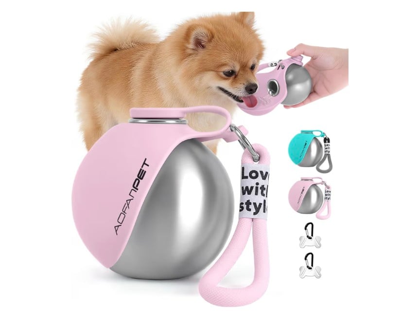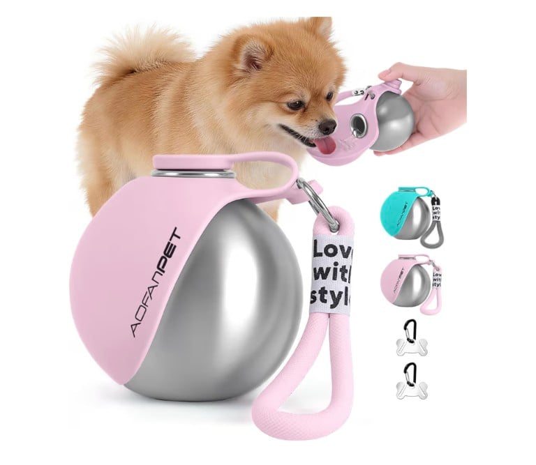 Portable Dog Water Bottle 10oz Stainless Steel Travel Dog Water Dispenser with Bowl