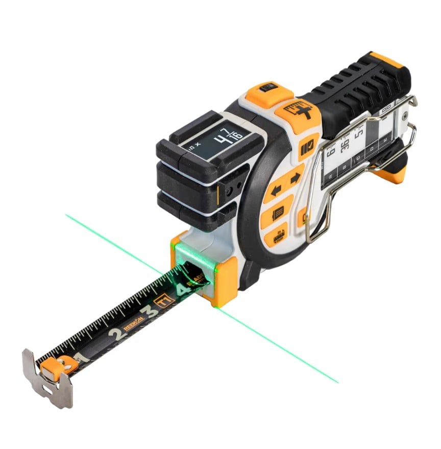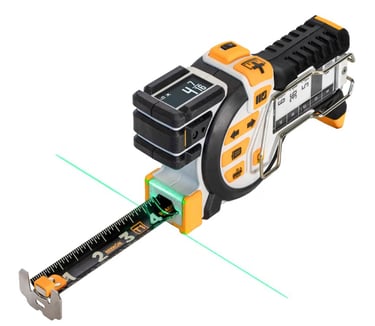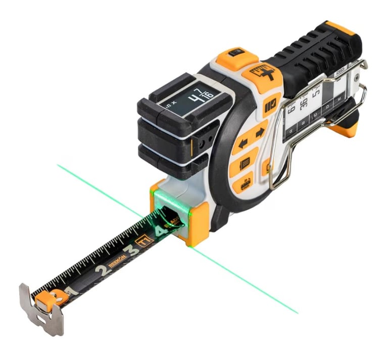 A professional-grade digital tape measure designed for extreme accuracy and productivity. The REEKON T1 Tomahawk combines a traditional measuring tape with smart digital features, including a green laser for precise alignment, an E-Paper display to store and view measurement lists, and Bluetooth connectivity to instantly share measurements with your phone. Built with replaceable blades and rugged construction, it’s ideal for contractors, woodworkers, engineers, and serious DIY users who need speed, accuracy, and smart workflow integration.