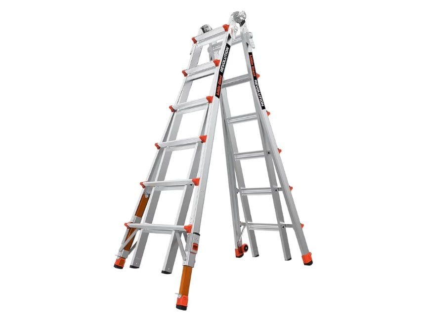 A professional-grade aluminum articulated ladder built to ANSI Type IA standards with a 300 lb load rating. Its extendable, multi-position design offers maximum versatility for ladders, scaffolding, and stair work. Equipped with TIP & Glide wheels for easy transport and ratchet levelers for stability on uneven surfaces, it’s ideal for contractors and serious home improvement tasks.