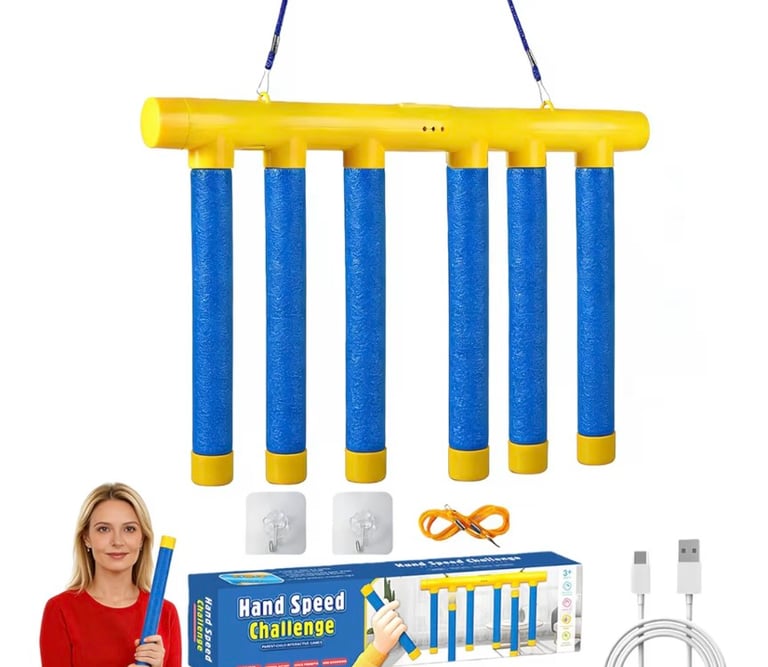 The Shelprojsu Reflex Drop Sticks Challenge Game is an exciting and interactive training tool designed to improve reaction time, hand speed, and coordination. Featuring three adjustable dropping sticks, the game challenges players to catch them as quickly as possible when released. Perfect for kids, athletes, and anyone looking to enhance reflexes, it provides both fun and skill development. Ideal for home use, training sessions, or friendly competitions, this game turns simple play into a fast-paced challenge that sharpens focus and agility.